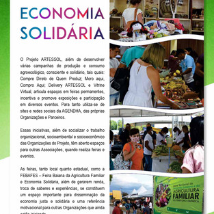 É com muita satisfação que a AGENDHA anuncia o Lançamento da Revista Artessol Itaparica/BA. Publicação online, em parceria com a SETRE: Secretaria do Trabalho, Emprego, Renda e Esporte do Governo da Bahia que apresenta a consolidação dos resultados alcançados pelo Projeto Artessol Itaparica. A edição está nascendo no formato digital, embora, logo estará disponível na versão impressa. Estampando na capa, um cata-vento de fotos de produtos da agricultura, imagens captadas nas vivências da equipe durante a sua realização, a revista traz o perfil das organizações socioprodutivas, bem como a trajetória do Projeto em dois anos de atuação.